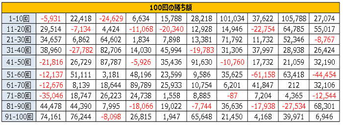 このサイトではパチンコシュミレーターで100回回した結果を基に違いを考察します。
